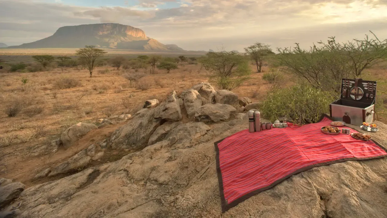 Begin your day together with a sunrise game drive. Midday, enjoy a picnic in the bush, a private moment with just the two of you and the serenade of nature. In the afternoon, visit a local Samburu village for a cultural immersion before returning to Basecamp to relax and share a riverside dinner beneath the stars.